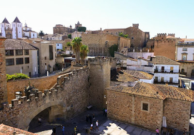 Saída de Córdova com pequeno almoço tomado no hotel ainda a Cidade dormia, como é bom rodar nas longas avenidas com poucos carros e sem filas nos semáforos, dei uma volta pelo centro e realmente deixa saudades. O gps foi simpático hoje, tirou-me da via rápida que liga Córdoba a Badajoz e levou-me por estradas mais reviradas e que passavam pelas localidades, o que ajuda a tornar a monotonia nestas tiradas maiores. Abastecimento com um café solo no caminho e quando a mota marcava 295 kms. ( contagem de hoje ) apareceu a placa Cáceres, era o ponto de interesse para hoje, V-Strom estacionada o mais perto do centro histórico e em poucos minutos de caminhada estava na Plaza Mayor da Cidade, património da Humanidade, sem ter a riqueza cultural de Ronda ou Córdoba toda a zona histórica é digna de nos perdermos nas suas enormes Igrejas e monumentos.